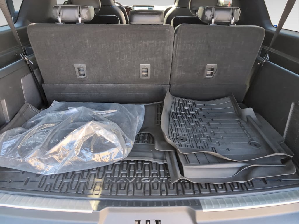EQUIPMENT GROUP 201A RESERVE I Luxury Package, Perfect Position Seats (30-Way) w/Active Motion, power thigh extender, head restraints and auto heated/ventilated w/memory, Illuminated 1st & 2nd Row Seat Belts, ambient lighting w/LED, Lincoln Lit Star in Grille, Radio: Revel Ultima 3D Audio System w/28 Speakers, subwoofer (featuring QuantumLogic 3D Surround technology), HEAVY-DUTY TRAILER TOW PACKAGE additional Lincoln Co-Pilot360 2.0 towing technology, 8700 lb max towing capacity, Tiered Cargo Area Management System, 4-way configurable partition, 26mm Radiator, Trailer Brake Controller, Trailer Sway Control, Pro-Trailer Backup Assist 2.0, Class IV w/4-Pin & 7-Pin Connectors, Electronic Traction Assist (eLSD), 2-Speed Transfer Case, Slow Climb Drive Mode, Front Tow Hooks, Smart Trailer Tow, WHEELS: 22 12-SPOKE BRIGHT-MACHINED ALUMINUM ebony black painted pockets, ALL-WEATHER FLOOR LINERS W/CARPET FLOOR MATS Front and rear, 2ND ROW HEATED/VENTILATED 40/CONSOLE/40 SEAT dual captains chairs w/PowerFold, tilt and slide functionality and console w/5.8 LCD touchscreen and multimedia audio controls, TRANSMISSION: 10-SPEED AUTOMATIC W/SELECTSHIFT paddle activation (STD), ENGINE: 3.5L TWIN-TURBOCHARGED V6: (STD).